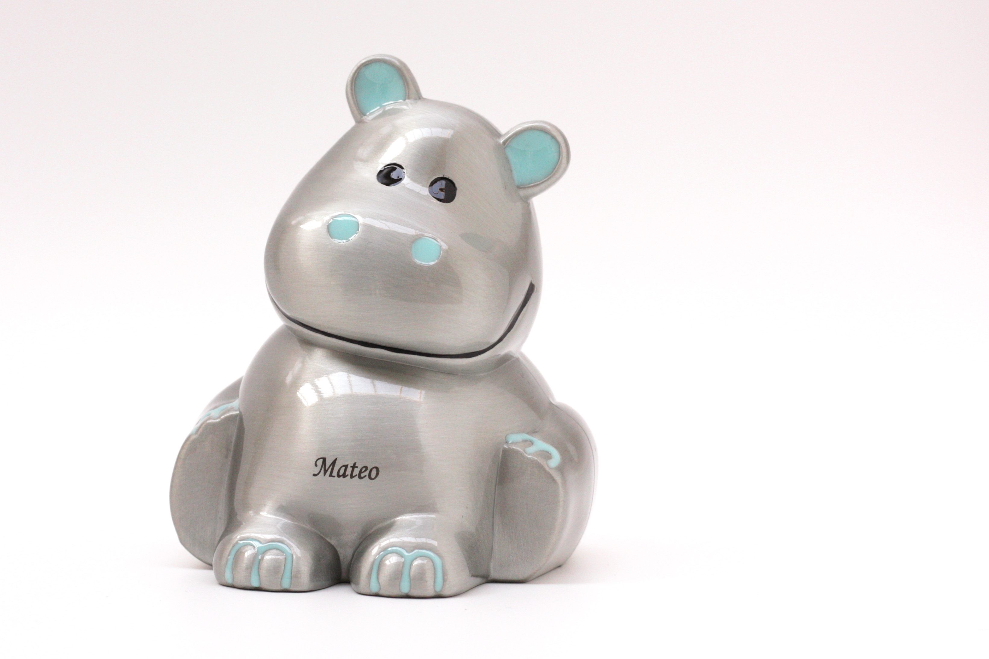 inkl. gratis graveringNordahl Andersen Flodhest sparebøsse blå fortinnet