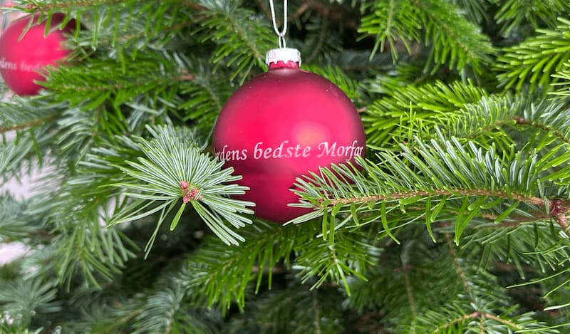 Julekugle Hjerte - "Du er verdens sødeste Mormor" - Rød mat
