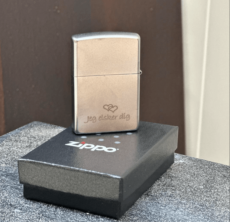 Hos Dahlsgravering.dk finder du den perfekte gave til ham, hende eller som personlig svendegave – en ægte Zippo lighter med din helt egen gravering. Vælg din favorit i blandt vores Zippo lighter udvalg og få en personlig Zippo lighter med gravering med navn, dato, tekst eller symboler. Graveringen er altid gratis hos os. Vi leverer hurtigt på kun 2-3 hverdage, og du kan også bestille med ekspres levering. En Zippo lighter med indgravering eller endda en Zippo lighter med billede graveret er den personlige gave, der overrasker, imponerer og huskes i mange år frem – se udvalget herunder og køb Zippo lighter i dag.