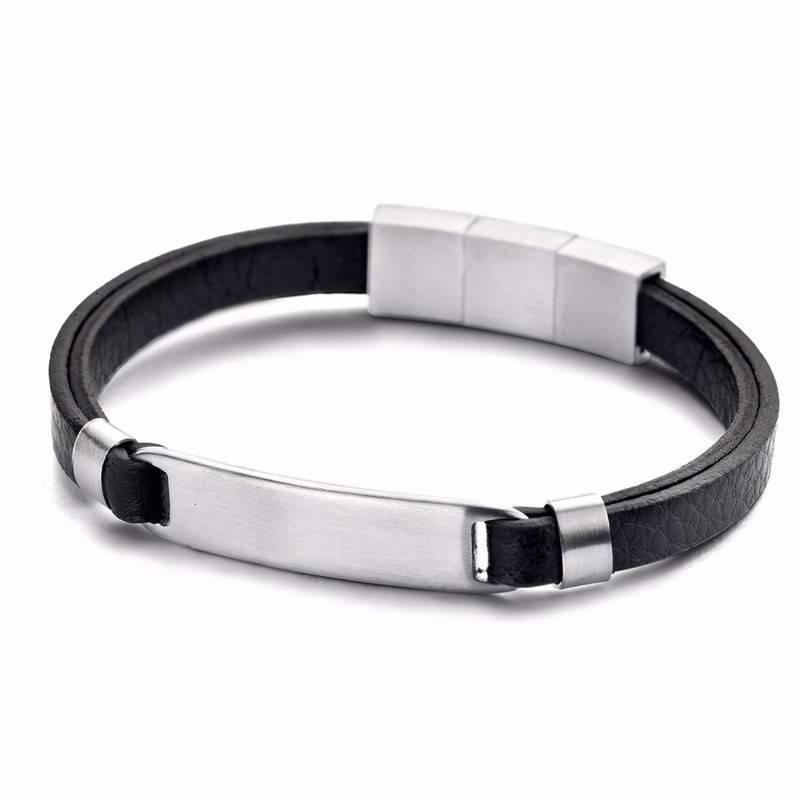 Et stilrent og råt armbånd fra Guld & Sølv Design, lavet i sort læder med en klassisk stållås. Armbåndet kan gøres helt personligt med din egen gravering – perfekt til initialer, dato eller et kort lille budskab.