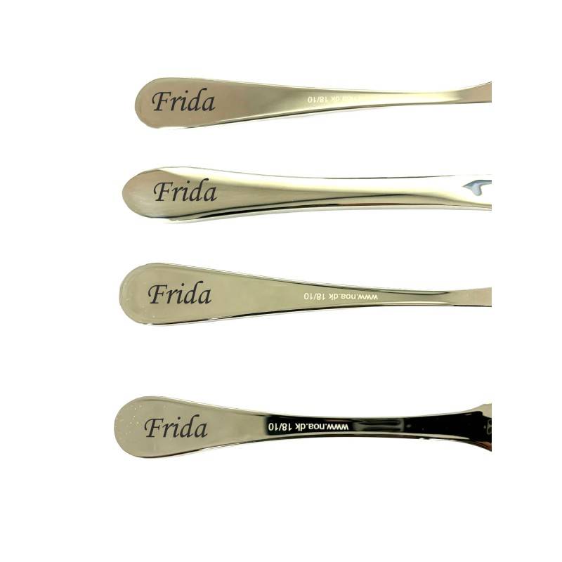 Dette er vores mest populære børnebestik, og med en personlig gravering bagpå får du en gave, der holder i mange år. Ofte gives det af bedsteforældre til dåb eller som 1-års fødselsdagsgave.