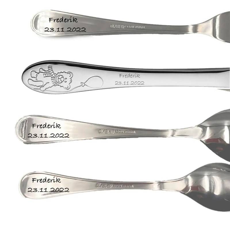 Børnebestik med Bamse – 4 dele (Rustfrit stål + bamse)