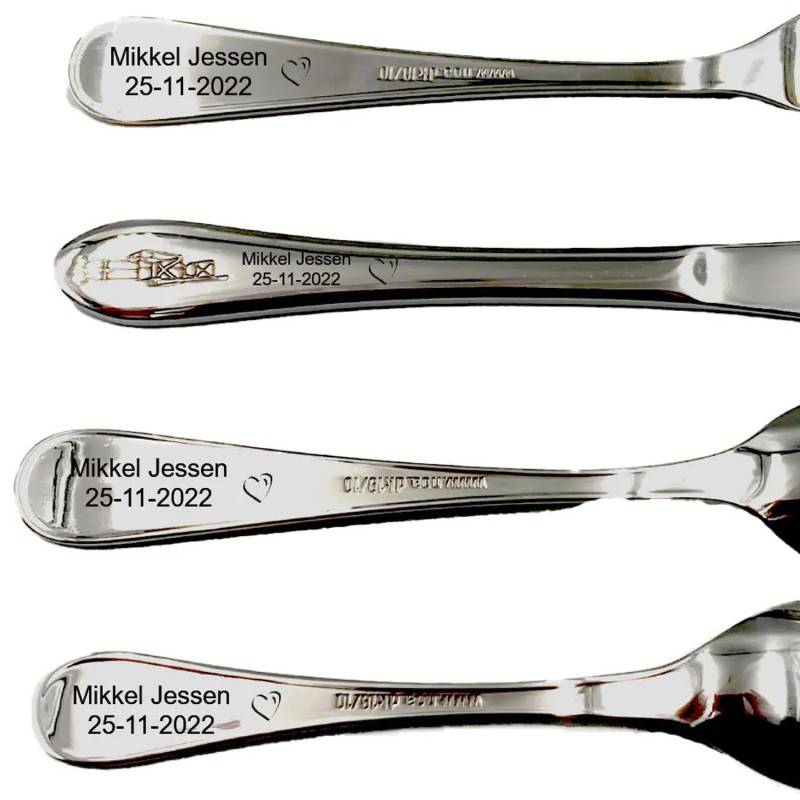 Det, der virkelig gør H.C. Andersen bestik til børn eventyrbestikket helt særligt, er muligheden for personlig lasergravering. Du kan tilføje barnets navn, en dato eller en kærlig hilsen på bagsiden af hver del.