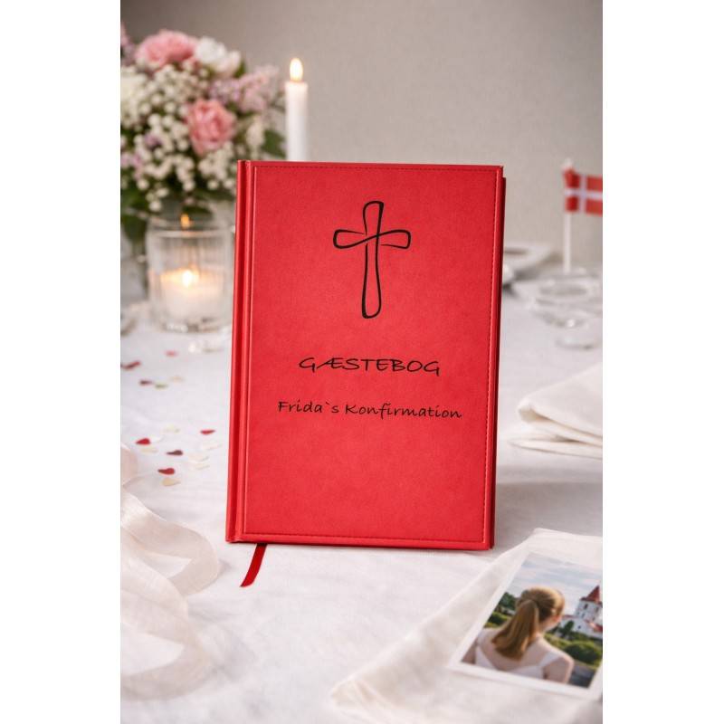Gæstebog Rød til konfirmation uden linjer 17,5 x 24,5 cm