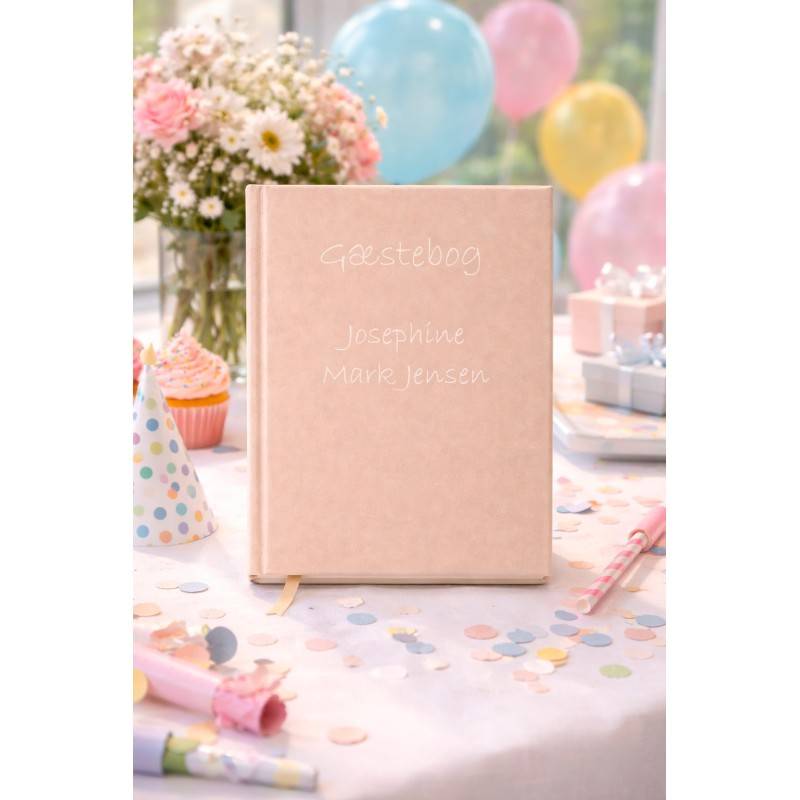 Skab et varigt minde fra en særlig begivenhed med en elegant og personlig gæstebog i smuk beige farve. Denne stilrene bog er perfekt til at samle hilsner, minder og gode ønsker fra familie og venner – uanset om det er bryllup, fødselsdag, barnedåb eller en anden festlig anledning.