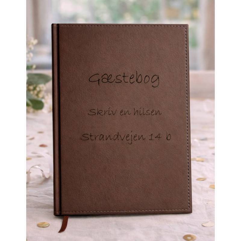 Eksklusiv gæstebog i brun italiensk kunstlæder – med personlig lasergravering