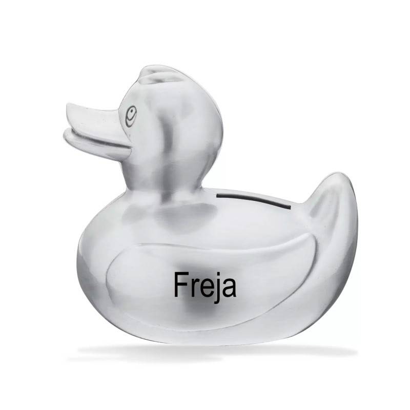 Denne dekorative and i fortinnet finish er en smuk og personlig gaveidé til barnedåb, navngivning eller fødselsdag. Med sit charmerende udtryk og tidløse design bliver den hurtigt et kært minde, som kan gemmes i mange år.