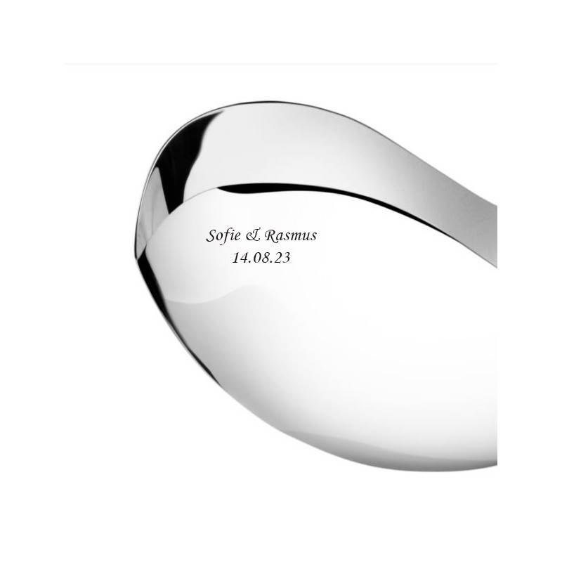 Skålen kan lasergraveres med tekst. Teksten bliver placeret som anvist på billedet. Teksten fremstår i let sort farve. Du anbefales ca. 10 tegn pr. linje. Graveringslinje 1 er den øverste linje. Graveringlinje 2 er den nederste linje.
