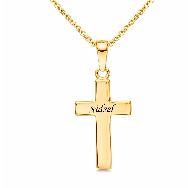 Guldkors i 8 kt. guld med kæde – klassisk kors med personlig gravering