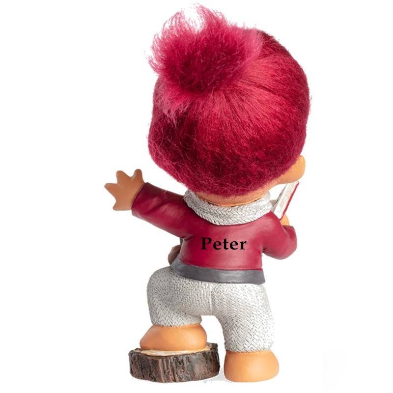 Lykketrold bror kan lasergraveres på bagsiden med din personlige tekst. Teksten vil blive lasergraverede ned i og fremstå i let sort farve. Her anbefaler vi Ariel som skrifttype og ca 15 tegn fordelt på 2 linjer.