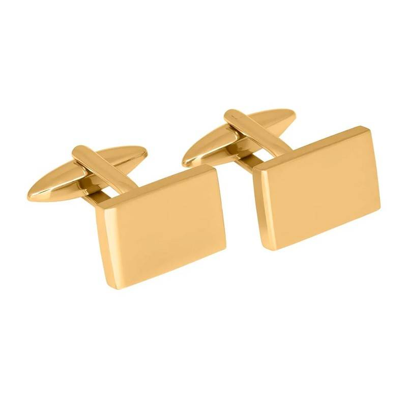 Disse elegante manchetknapper i forgyldt rustfri stål er det perfekte valg til manden, der ønsker et klassisk og stilrent udtryk. Det aflange, firkantede design med en let buet overflade giver et eksklusivt look, som passer perfekt til både jakkesæt og habit – især i mørke nuancer.