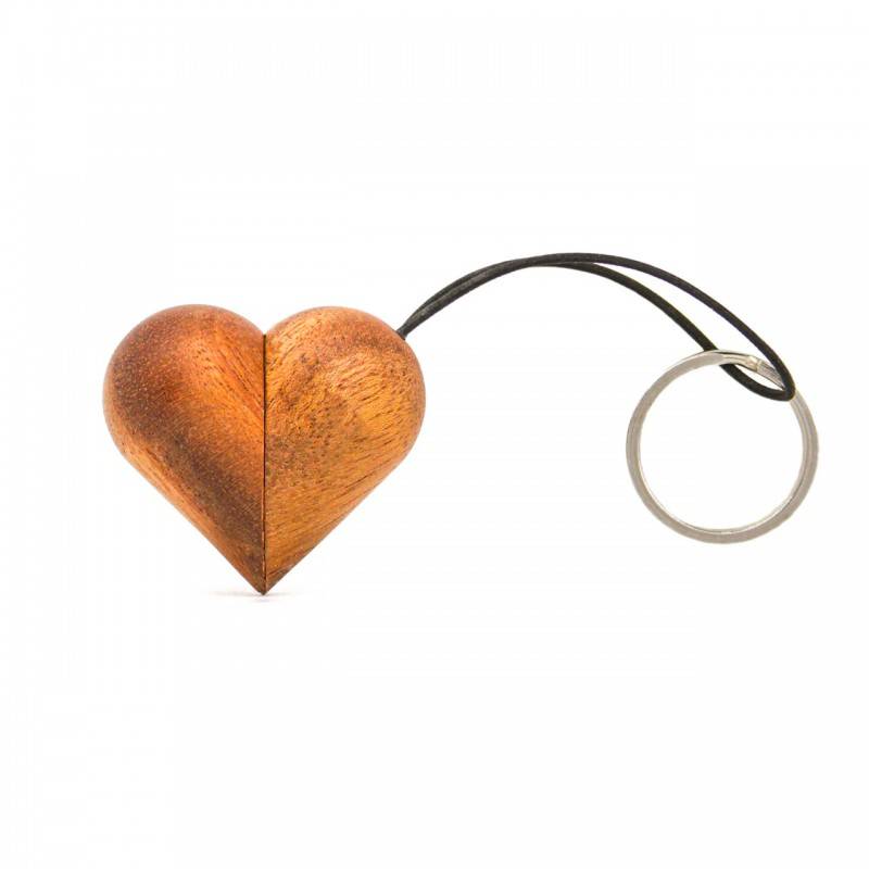 Fremstillet af vietnamesisk mahogni og måler ca 5 x 5 cm. Hjerte nøgleringen kan formes som et hjerte eller som en cylinderform ved en enkelt klik. Her kan du få lasergraverede din personlig tekst på den ene del af hjertet og kan stadig ses, selv om du drejer den om. Graveringen vil blive brændt ned i træet og fremstå i let sort farve. Her anbefaler vi Ariel som skrifttype og ca 15 tegn fordelt på 2 linjer.