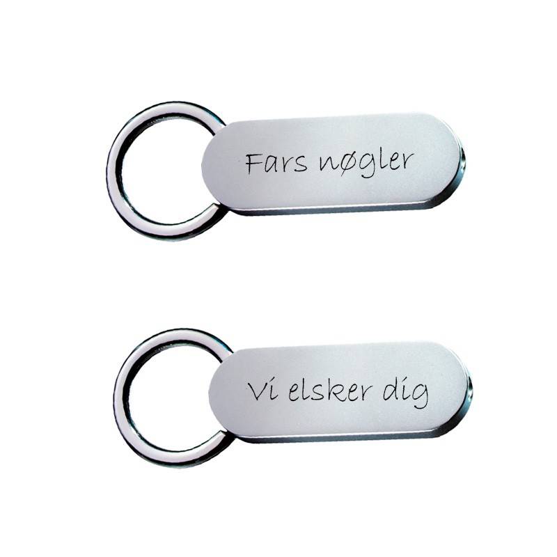 En flot enkelt nøglering med mulighed for indgravering på 2 sider. Teksten vil blive lasergraverede og fremstå i let sort farve. Her kan alle vores skrifttyper anvendes og der kan ca være 30 tegn på hver side. Med vores design kan der tilknyttes et lille motiv, som gør din nøglering helt perfekt. Her er der også mulighed for at upload dit eget billede eller firmalogo. Vi anbefaler dig at lave billede på 1 side og tekst på den anden. Jo større vi kan lave billede, jo bedrer bliver det. Vi fjerne selv alt unødvendig støj fra billede. Firkanten nøglering måler 62 x 26 mm og leveres. æske, så den er klar som gave