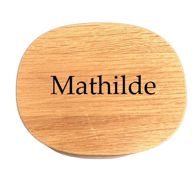 Æsken måler 8 x 10 og kan lasergraveres på låget i 2 linjer. Teksen vil blive brændt ned i træet og der kan forekomme ujævn farve i skriften, alt efter træet struktur. Her kan der ca være 30 tegn fordelt på 2 linjer og de fleste af vores skrifttyper er anvendelige.