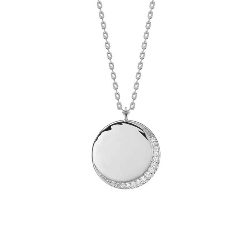 Smykket har små  Kubisk zirkonia og i blank sølv. Teksen vil blive lasergraverede ned i materialet og fremstå i let sort farve. Vi anbefaler ca 20 tegn fordelt på 2 linjer.
