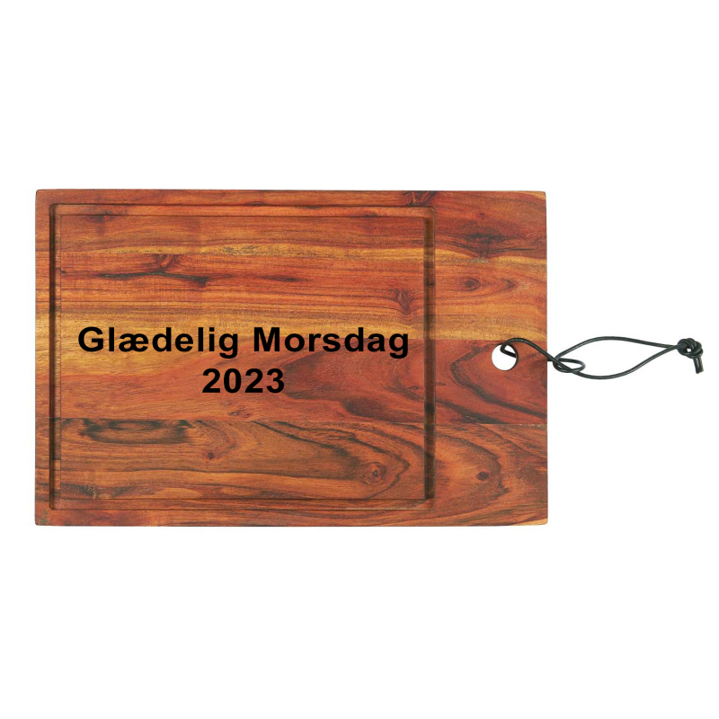 Et fint skærebræt med samt rille ved kant og akacietræ. Det kan lasergraves med din personlig tekst foran på midt. Teksten vil blive brændt ned i og fremstå i let sort farve. Her anbefaler vi Ariel eller Cosivia som skrifttype. Der kan ca være omkring 50 tegn fordelt på 3 linjer. Skærebræt måler B: 30 H: 1,5 L: 48 og er en perfekt gave til en der elsker at være i køkkenet. Da træet er lavet ud fra naturen kan der være farveforskel fra billede samt farve i teksten kan ændres efter farve i træet.