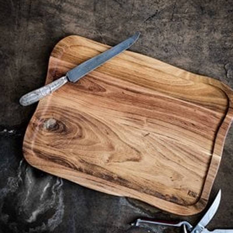 Skær brød, grøntsager, frugt og kød på det alsidige skærebræt, der samtidig er smukt og vil pynte i køkkenet.