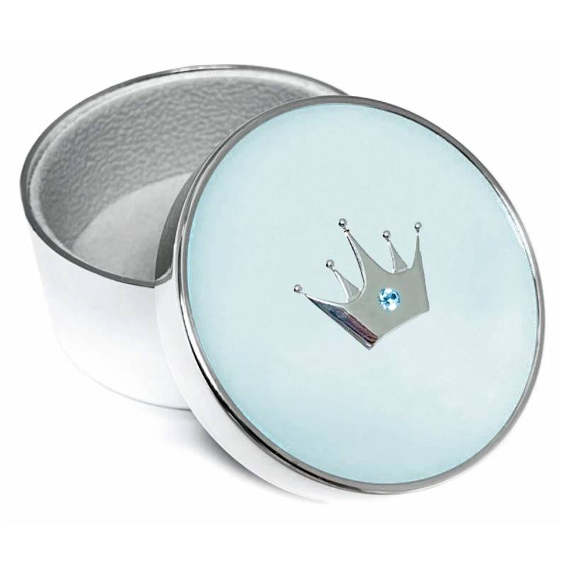 tlf. 20 33 76 60Forkæl en lille prins med dette smukke smykkeskrin i flot krom med lyseblå overflade. På låget stråler en elegant krone, som giver skrinet et magisk og eventyrligt udtryk.