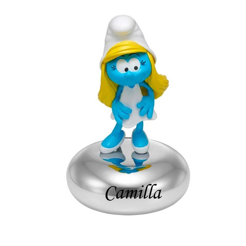 Foden er flot forkromet og giver figurens design et eksklusivt look. Den kan personliggøres med en lasergravering på forsiden, så Snølfine bliver den perfekte gave til alt fra barnedåb og fødselsdag til jul og andre særlige anledninger. Her kan der ca være 25 tegn fordelt på 2 linjer og teksten vil fremstå i let sort farve. Den måler 12 cm i højden og ca 8 cm i diameter på fod.