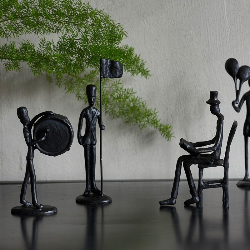 tlf. 20 33 76 60Her finder du en flot sort garder med tromme i metal – en dekorativ figur med et råt og stilfuldt udtryk. Figuren kan lasergraveres med en personlig tekst, f.eks. et navn eller en dato, og der kan være op til ca. 20 tegn. Graveringen vil fremstå i en let lys farve i overfladen.